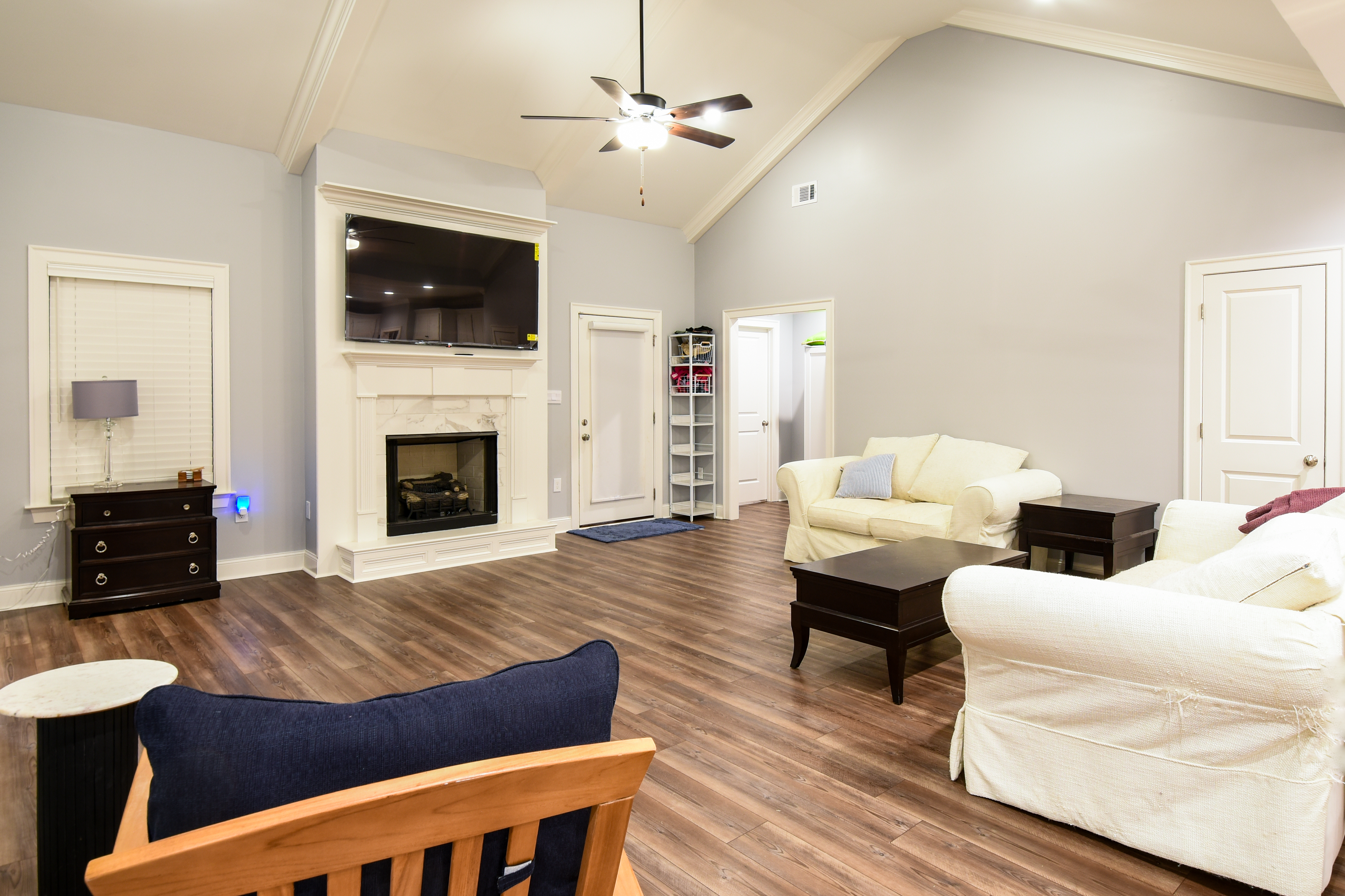 The heart of the home is the chef’s kitchen, featuring granite countertops, a massive island, gas cooktop, and tankless water heater—perfect for cooking and entertaining. Enjoy cozy evenings by the gas fireplace and appreciate the fine touches like crown molding and smart locks for added convenience and security.
